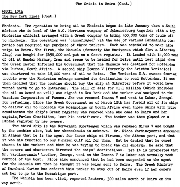 πετρέλαιο την κυβέρνηση του Ίαν Σμιθ με την υποστήριξη της CIA (βλ.